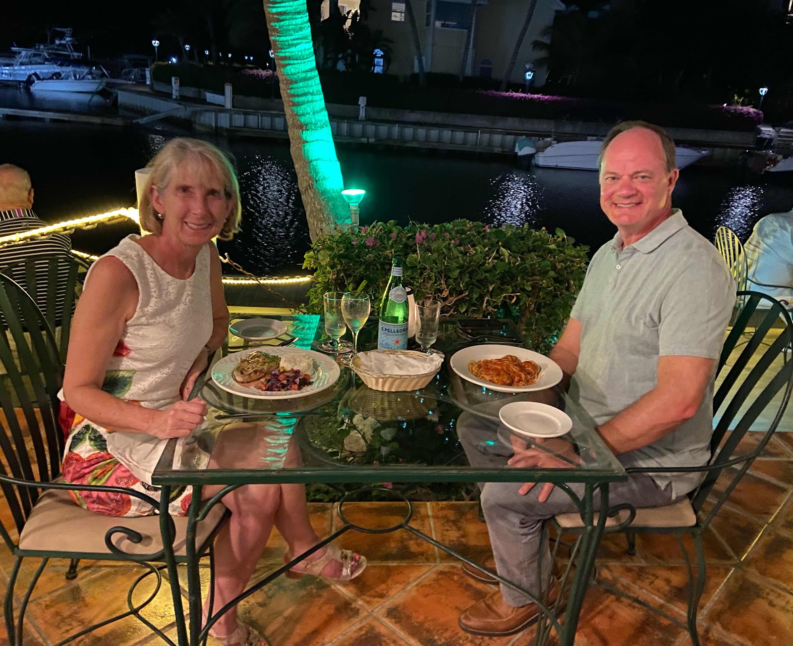 Dinner was at a great Italian place called Baci on the water in the Turtle Cove Marina (the heart of Providenciales). Pam’s yellow-fin tuna was caught locally today - seared to perfection.